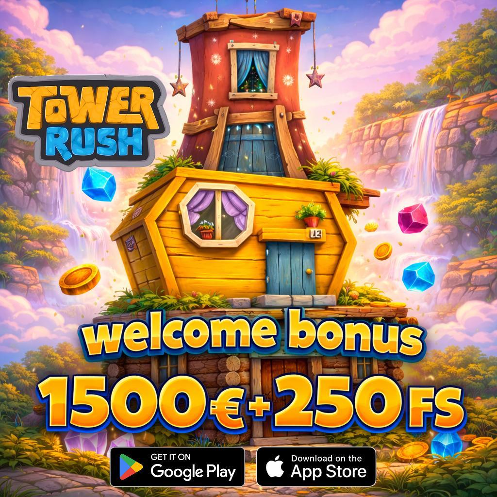Tower Rush welcome bonus фриспины мультяшная графика фэнтези башня 1500 евро